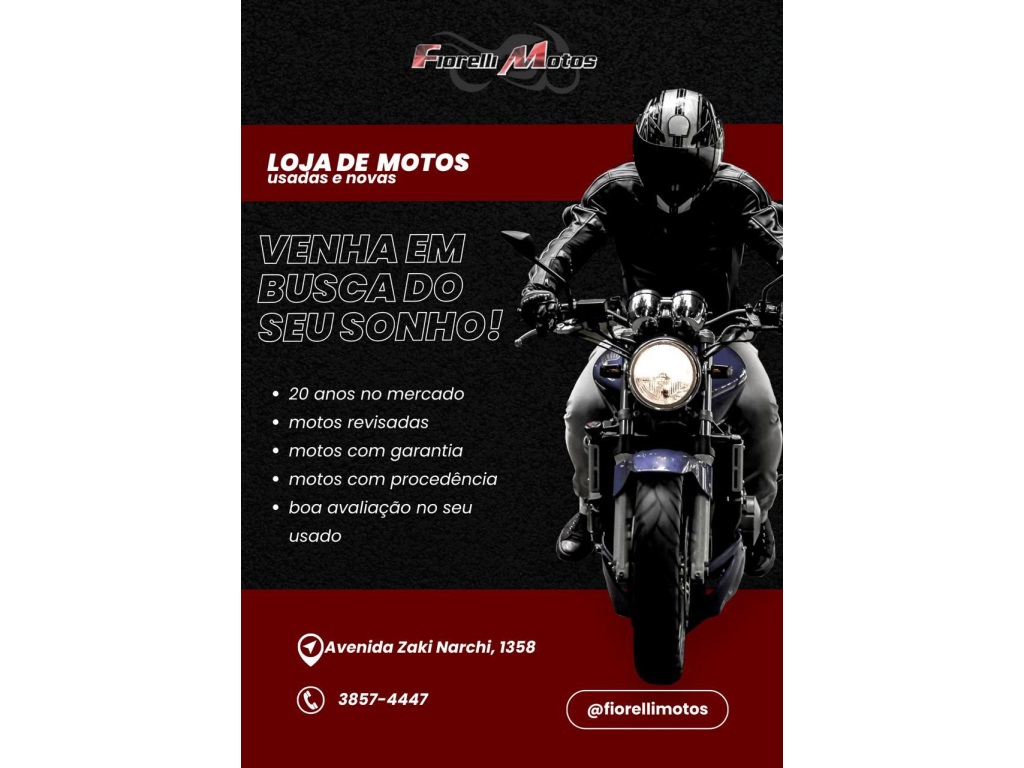 Moto revisada recentemente nada a fazer sem detalhe manual e chave reserva aceitamos troca por moto, financiamos ate 48x com ou sem entrada ,com CNH e sem CHH ,aprovamos via telefone ou whatsApp e parcelamos no cartão de crédito até 21 x tanto a moto como a entrada confira! Interessados WhatsApp (11)3857-4447, Fiorelli Motos, Sempre o melhor negócio!